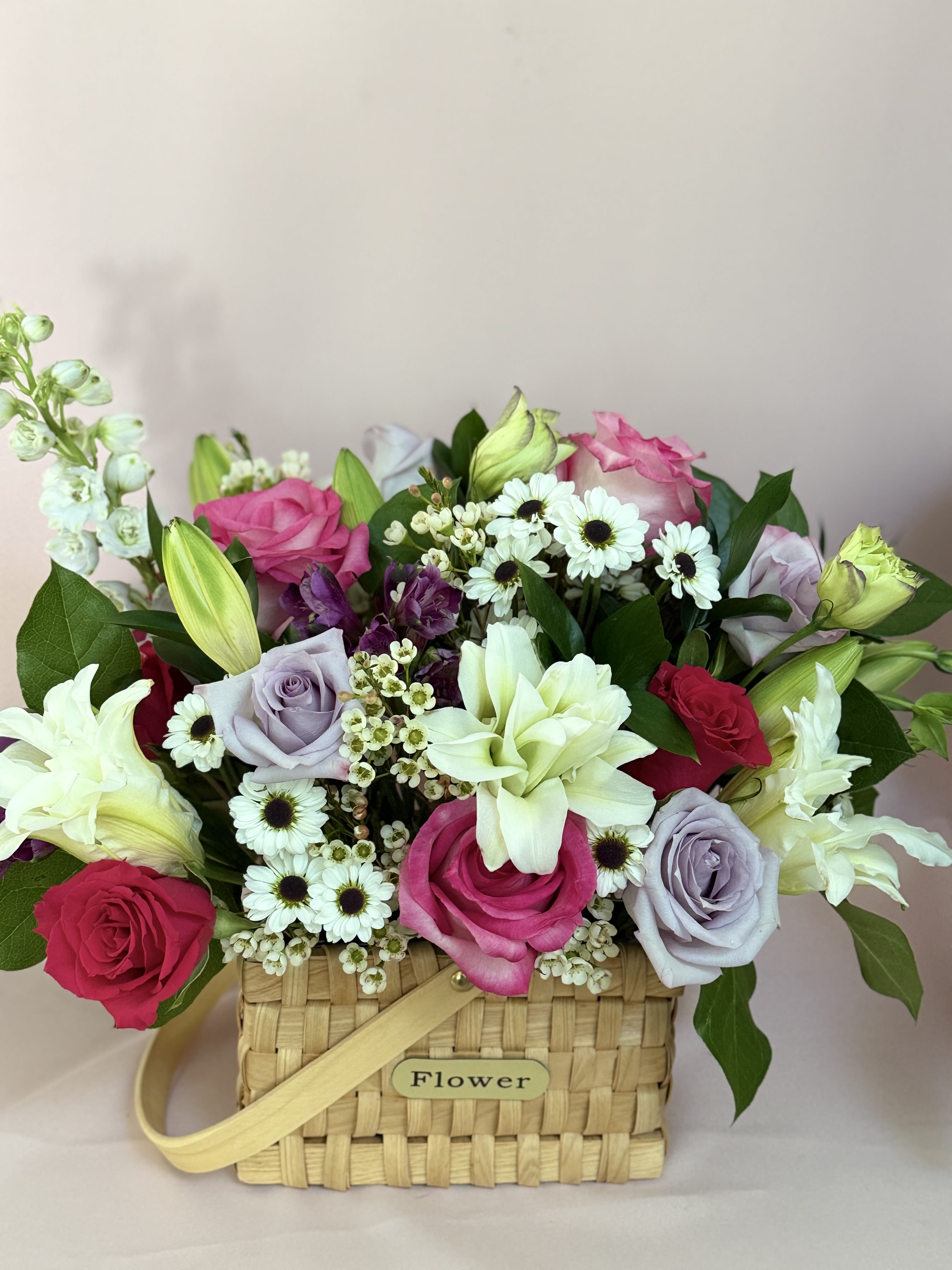 We offer custom flower delivery in Santa Clarita, using fresh, seasonal blooms arranged with care. Whether you're sending flowers for a birthday, Valentine's Day, or just because, we'll design something one of a kind to match the moment. Just tell us the colors, style, or feeling you want to share, and we'll bring your vision to life. You can also add a handwritten card or small gift to make it even more personal. Roses, tulips, ranunculus, and other seasonal favorites may vary, but we always keep the overall look and value of your arrangement just right.